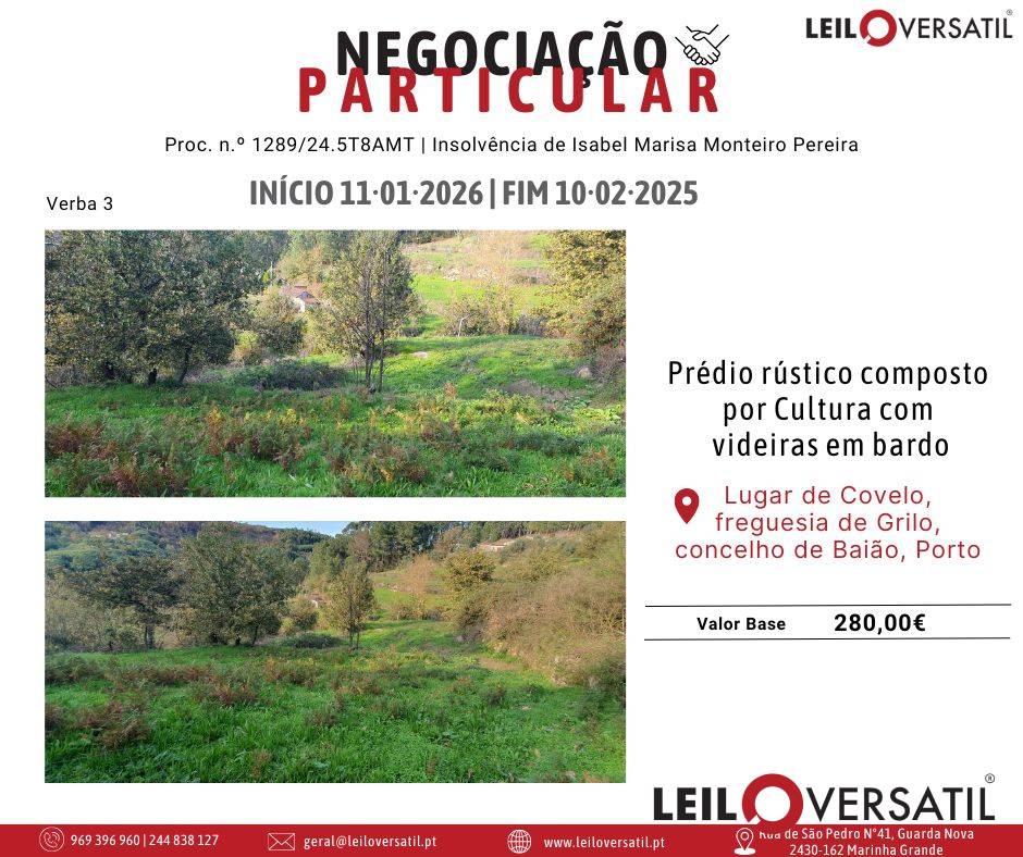 Leilão Eletrónico | Processo nº 1880/25.2T8STS - Insolvência de Organic Nature - Forest Organic Products, S.A.