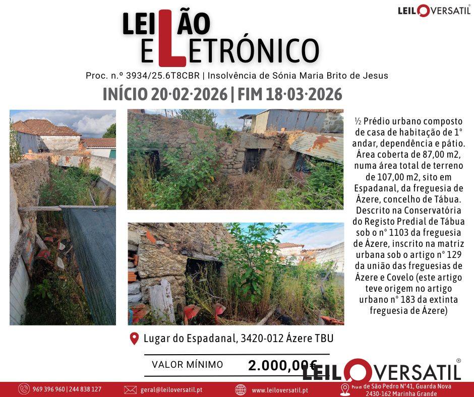 Leilão Eletrónico | Processo nº 16185/25.0T8SNT - Insolvência de Jorge Manuel Moreira Pinto