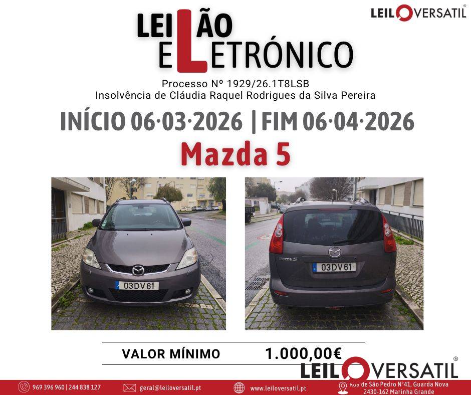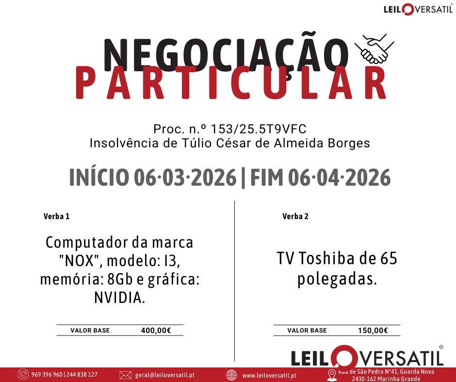 Leilão Eletrónico | Processo nº 3565/24.8T8VFX - Insolvência de Grandative - Consulting, Lda.