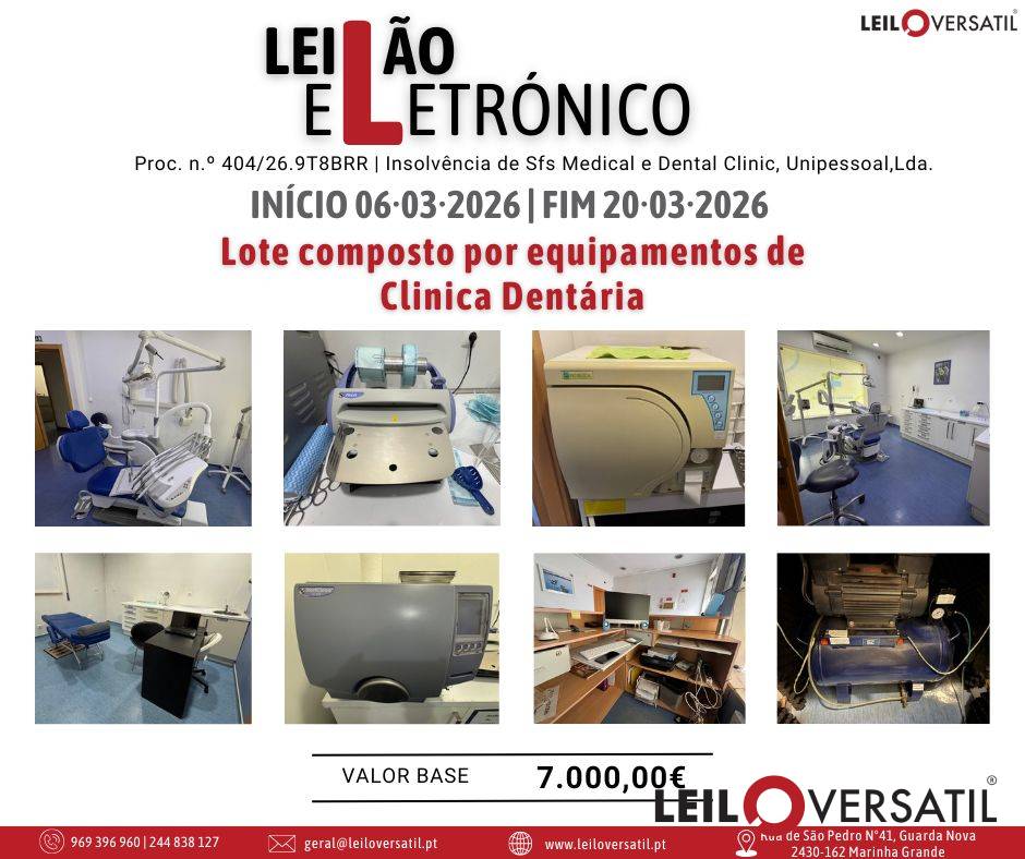 Leilão Eletrónico | Processo nº 404/26.9T8BRR - Insolvência de Sfs Medical e Dental Clinic, Unipessoal,Lda.